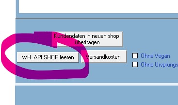 Klicken sie dort auf WH_API SHOP leeren. Danach ist der Shop leer. Laden Sie dann wie gewohnt alles noch mal neu hoch.