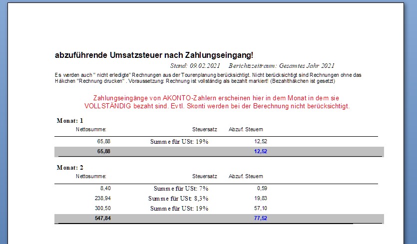abzuführende Umsatzsteuer nach Rechnungsdatum (ausführlich)!