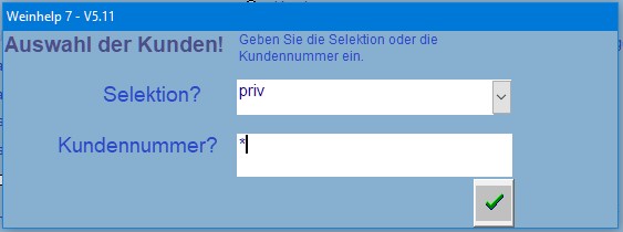 Wählen Sie aus, für welche Selektion in der Kundenkartei die Auswertung erfolgen soll und geben Sie an, für welche Kundennummer Sie die Auswertung wünschen. Das kann besonders interessant sein, wenn sie für einen Bestimmten Kunden sehen wollen was er bestellt hat.