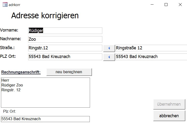 Durch einen Doppelklick auf eine fehlerhafte Adresse öffnet WEINHELP 7 ein Dialogfenster in dem Sie die Adresse korrigieren können.