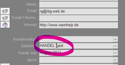 Falls Sie bisher noch keine besondere Selektion für Handelskunden haben, gehen Sie einfach in die Kundenverwaltung, suchen sich ihre Handelskunden heraus und tragen in die Selektion an den ANFANG z. Bsp. HANDEL ein.