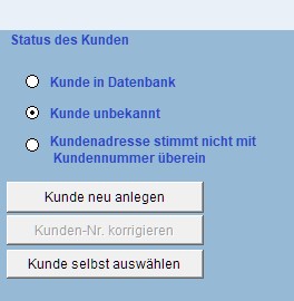 Wenn der Kunde unbekannt ist, klicken Sie bitte auf Kunde neu anlegen.