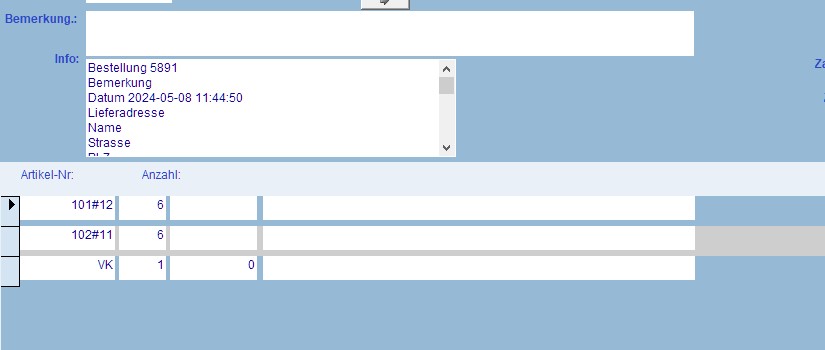 Danach öffnet sich das Formular mit den Bestellungen. Es zeigt Ihnen die Bestellungen, die seit Ihrem letzten Abruf in Ihrem Internetshop eingegangen sind.