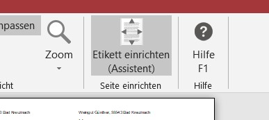 Wenn Sie in Weinhelp einen Ausdruck zur Ansicht geöffnet haben, bei dem es sich um Etiketten handelt, wird statt des normalen Seite einrichten, Etikett einrichten angezeigt.