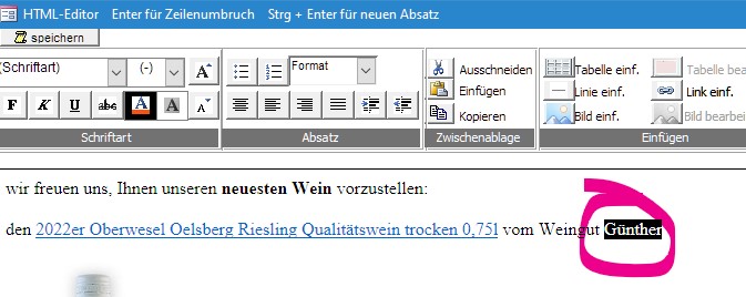in diesem Beispiel wir ein Link auf weinhelp.de gesetzt. Der Link wird außerhalb der Mail im Browser geöffnet.