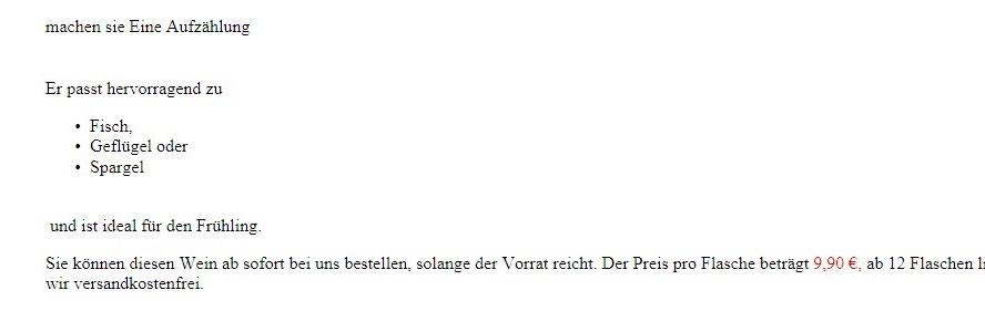 Text formatiert einfügen. Alle Formatierunen werden in den Text übernommen. Besonders bei der Schriftart kann das in der Mail, die beim Kunden ankommt zu Abeichungen führen, wenn die Schriftart auf dem Zielrechner nicht vorhanden ist