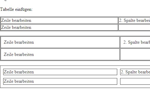 Um eine Tabelle einzufügen können Sie an jeder beliebigen Stelle im Text den Cursor plazieren und dann auf Tabelle einf. klicken