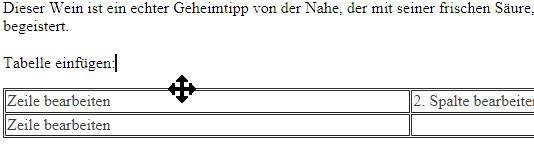 Um eine Tabelle noch einmal zu bearbeiten, bewegen Sie den Cursor am Rand der Tabelle, bis der Corsor seine Form ändert.