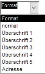Im Kopf des Editors finden Sie Schaltflächen und Auswahlfelder zur Formatierung des Textes.