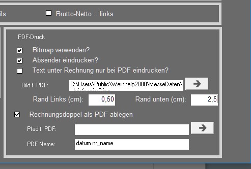 Damit WEINHELP die Datei beim PDF-Druck mit im Hintergrund ausdruckt, muss dies in den Stammdaten eingestellt werden.