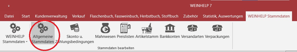 Klicken Sie im TAB WEINHELP Stammdaten auf allgemeine Stammdaten