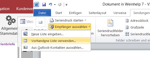 Die Datenquelle muss die SBListe.xls aus Ihrem Weinhelp-Verzeichnis sein. Die liegt in der Regel auf